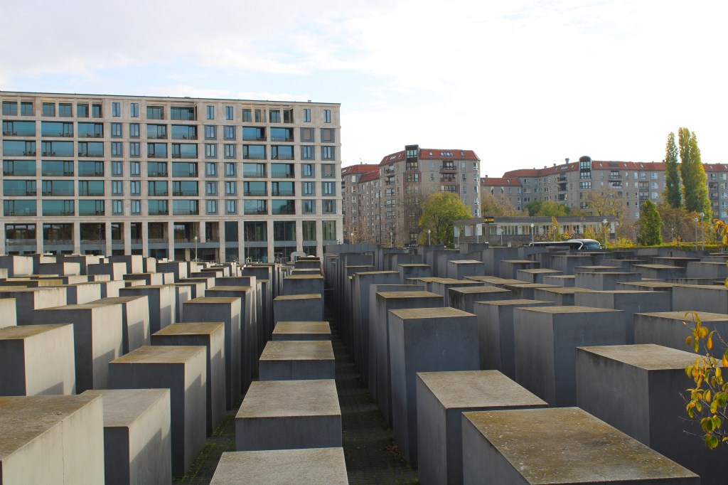 Ένα από τα πιο συγκλονιστικά σημεία της πόλης είναι το Μνημείο του Ολοκαυτώματος, αφιερωμένο στη μνήμη των Εβραίων που χάθηκαν κατά τη διάρκεια του Β’ Παγκοσμίου Πολέμου. Αποτελείται από 2.711 ορθογώνια μπλοκ από σκυρόδεμα, διαφορετικού ύψους, διατεταγμένα σε σειρές σε μια τεράστια υπαίθρια έκταση. Καθώς περπατάς ανάμεσά τους, το συναίσθημα γίνεται όλο και πιο έντονο – νιώθεις πολύ μικρός. Είναι ένα μνημείο που δεν χρειάζεται πολλές λέξεις, μόνο σεβασμό.