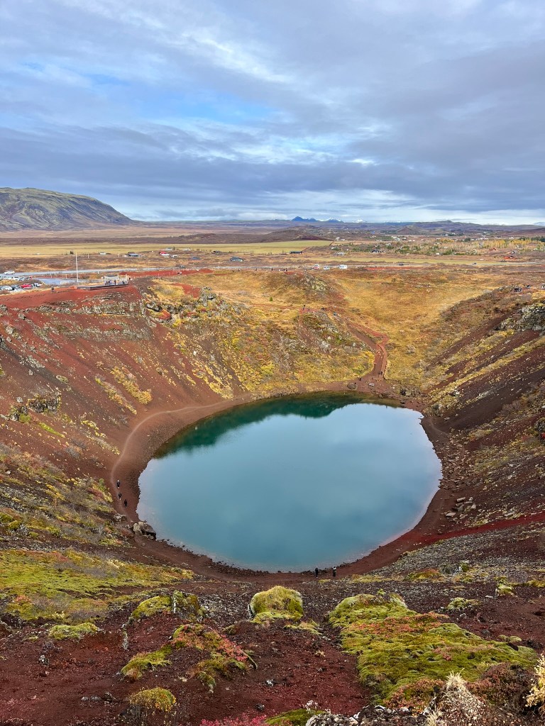 Ο Kerið είναι ένας ηφαιστειακός κρατήρας μόλις 6.500 ετών στη νότια Ισλανδία. Το εσωτερικό του καλύπτεται από βαθύ πράσινο βρύο, ενώ η λίμνη στο κέντρο του λάμπει σε έντονο μπλε-γαλάζιο χάρη στα ορυκτά του εδάφους.
