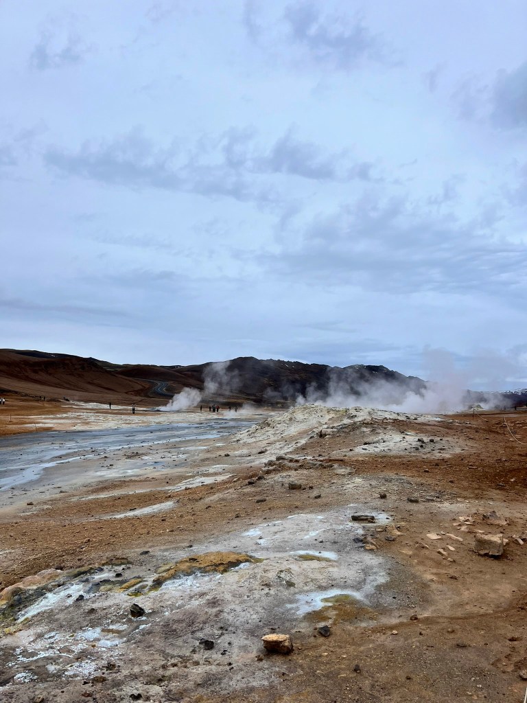 Η γη στην Ισλανδία βράζει κάτω από τα πόδια σου και οι γεωθερμικές περιοχές είναι η πιο ξεκάθαρη απόδειξη. Στην κοιλάδα Haukadalur βρίσκεται ο Strokkur, ο πιο διάσημος θερμοπίδακας που εκτοξεύει νερό στα 20–30 μέτρα κάθε λίγα λεπτά. Στο Hverir, στη βόρεια Ισλανδία, θα δεις λίμνες λάσπης να κοχλάζουν και ατμός να βγαίνει από τα ανοίγματα στη γη. Αυτά ονομάζονται φουμαρόλες και μπορεί να φτάσουν θερμοκρασίες πάνω από 300°C. Όταν η θερμοκρασία είναι λίγο χαμηλότερη, σχηματίζονται οι σολφατάρες, απελευθερώνοντας τη χαρακτηριστική μυρωδιά του υδρόθειου που θυμίζει σάπιο αυγό. Το γύρω τοπίο βάφεται κόκκινο, πορτοκαλί και κίτρινο από το θείο, χωρίς ίχνος βλάστησης και πραγματικά νιώθεις σαν να περπατάς σε άλλον πλανήτη.