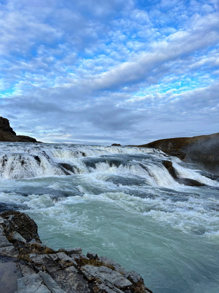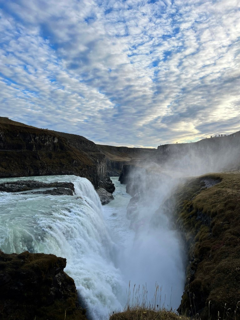 Στην καρδιά του Golden Circle βρίσκεται ο Gullfoss, ο «Χρυσός Καταρράκτης» της Ισλανδίας. Τα νερά του ποταμού Hvítá πέφτουν με ορμή σε δύο διαδοχικά επίπεδα, συνολικού ύψους περίπου 32 μέτρων, πριν χαθούν μέσα στο βαθύ φαράγγι. Το θέαμα είναι τόσο εντυπωσιακό και συχνά σχηματίζονται ουράνια τόξα μέσα στα σύννεφα υδρατμών, χαρίζοντας μια μαγική ατμόσφαιρα.