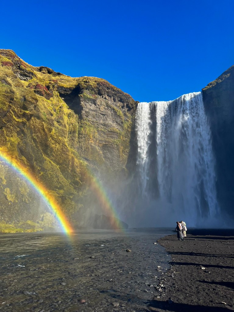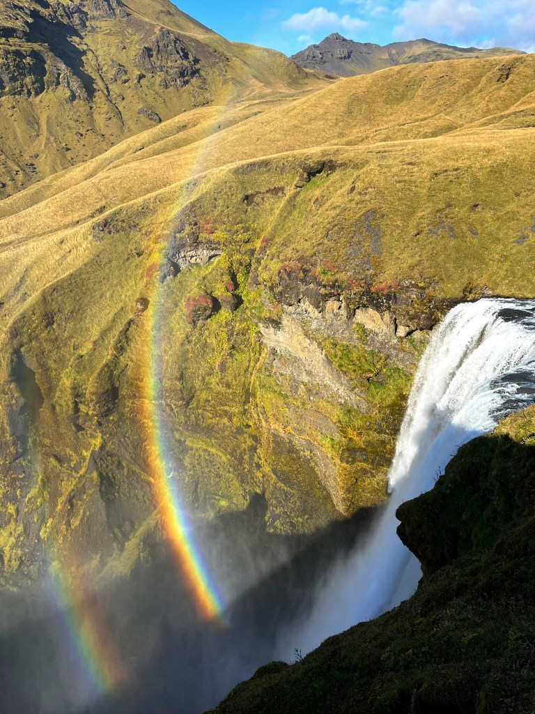 Ο Skógafoss είναι ένας από τους πιο φωτογραφημένους καταρράκτες της Ισλανδίας. Με ύψος 60 μέτρα, η ορμή του νερού και η σχεδόν τέλεια ορθογώνια μορφή του δημιουργούν ένα εντυπωσιακό πέπλο νερού. Αν ο καιρός είναι καλός, το ουράνιο τόξο μπροστά του είναι σχεδόν εγγυημένο. Υπάρχει, επίσης, ένα μονοπάτι με σκαλοπάτια που οδηγεί σε πλατφόρμα θέασης στην κορυφή του καταρράκτη, προσφέροντας πανοραμική θέα στον ποταμό Skógá και την ακτογραμμή. Λίγα λεπτά πιο δίπλα, κρύβεται ο Kvernufoss, ένας πιο μικρός αλλά εξίσου μαγευτικός καταρράκτης. Το μονοπάτι σε οδηγεί πίσω από τα νερά του και η ησυχία που τον περιβάλλει κάνει την εμπειρία πραγματικά ξεχωριστή.